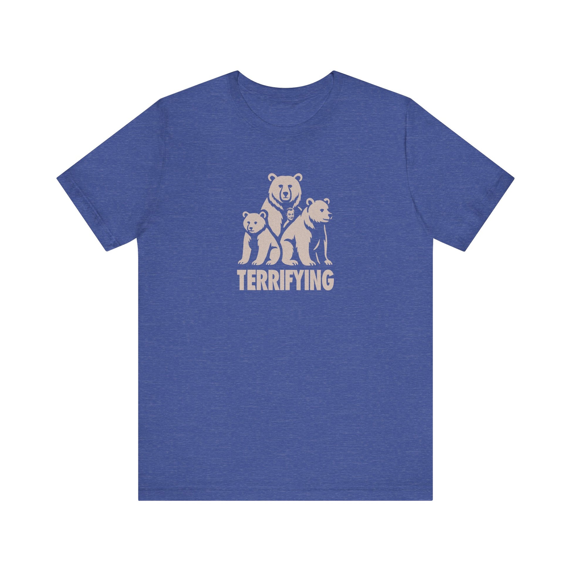 Three towering bears. One forced smile. This silhouette-styled tee fuses two classic moments into a single minimalist visual, where the most terrifying thing isn’t the wildlife. It’s part PSA, part inside joke, and fully ready to confuse strangers in the best way possible. Wear it as a warning, a wink, or as a reminder you're here to see Koothrappali (not kill Batman).