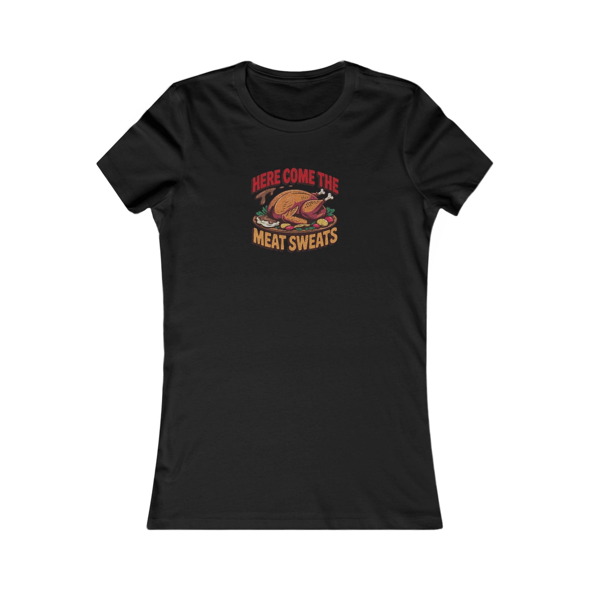 Here Come the Meat Sweats — Friends Thanksgiving Women's Tee (Dark)