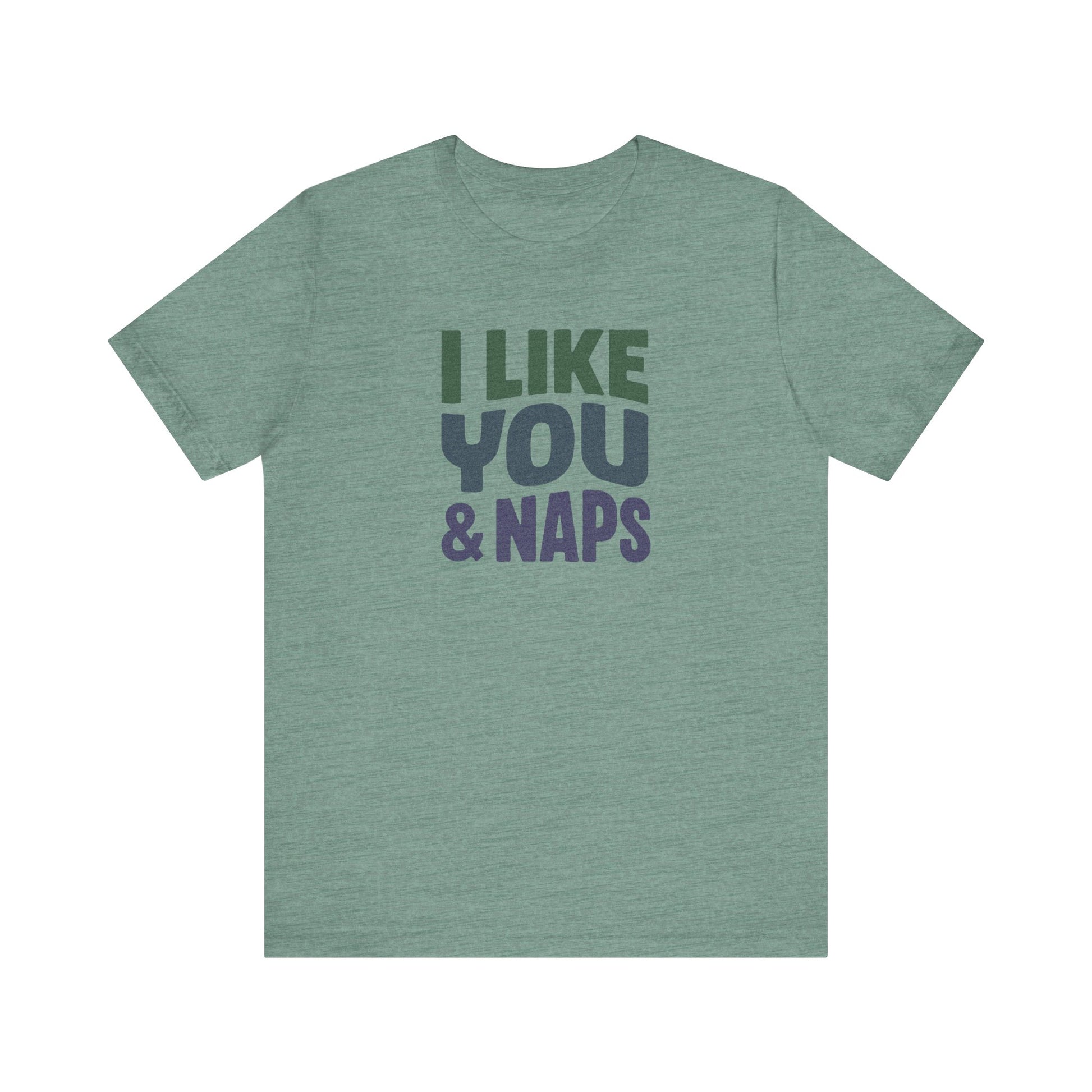 - “I Like You & Naps” full front graphic in cool-toned gradient