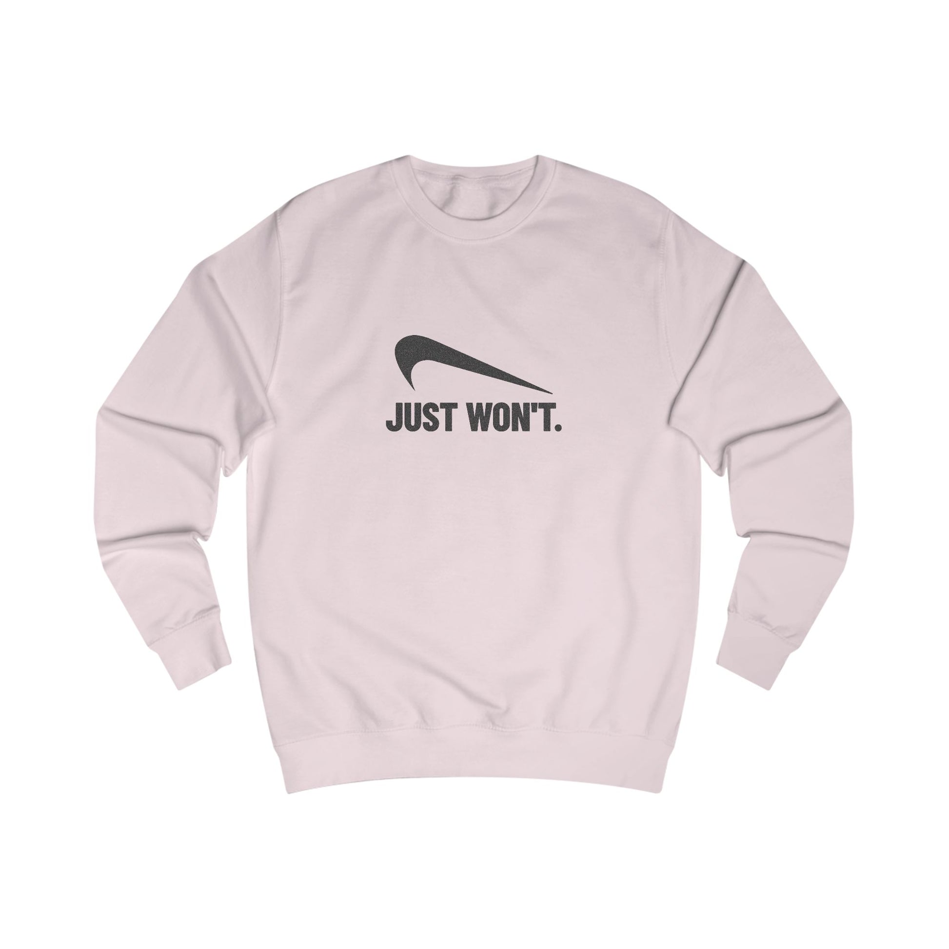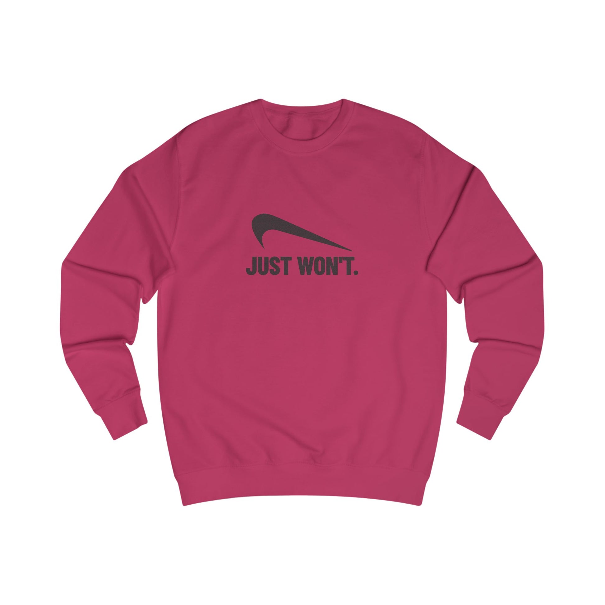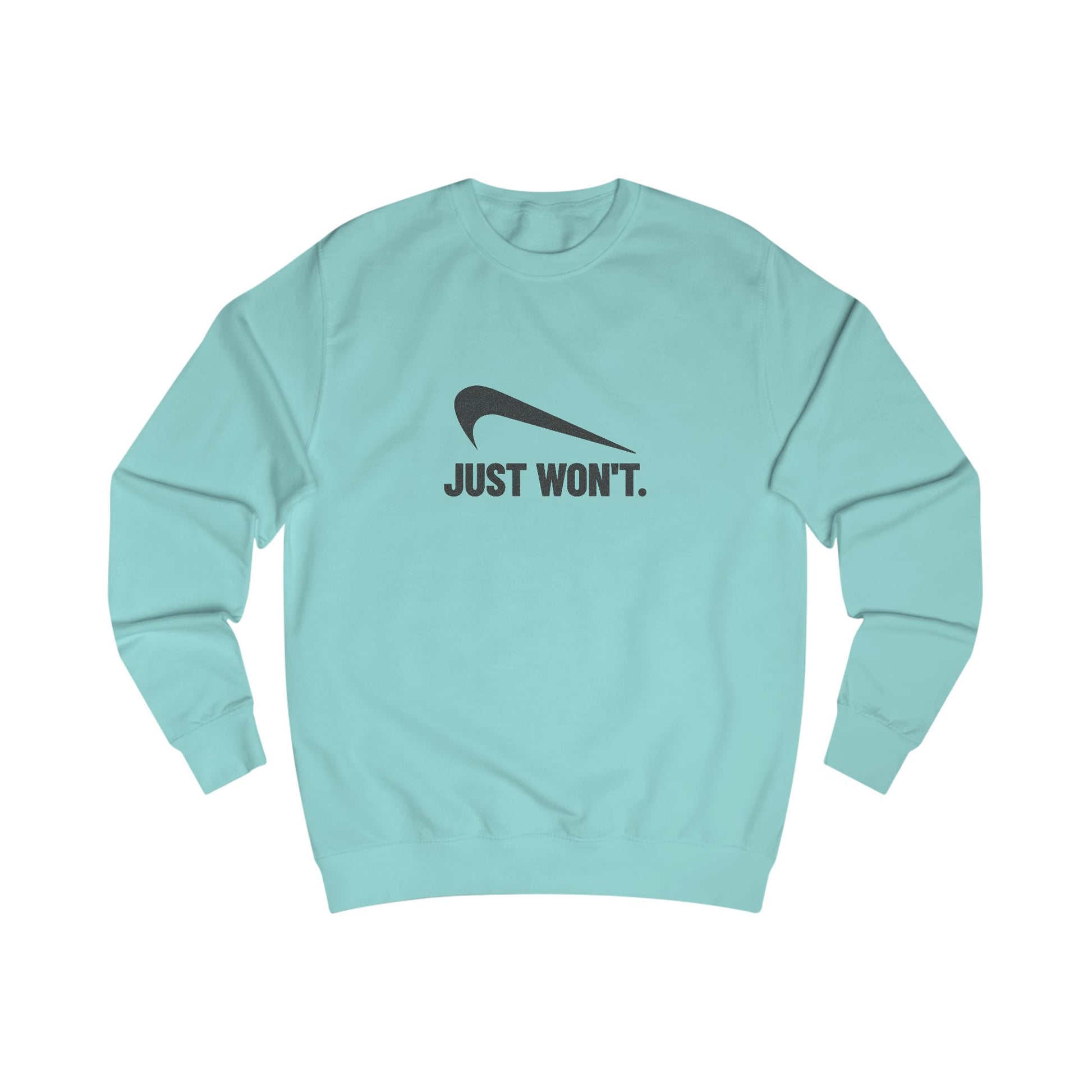 Ambition? Nope. Drive? Still nope. If you've reached the point where “can’t” has evolved into “won’t,” this design is for you. Just Won’t is the final form of “over it.” Designed for anyone who’s had enough meetings, notifications, or human interaction for one lifetime, this sweatshirt delivers peak apathy with clean retro style.