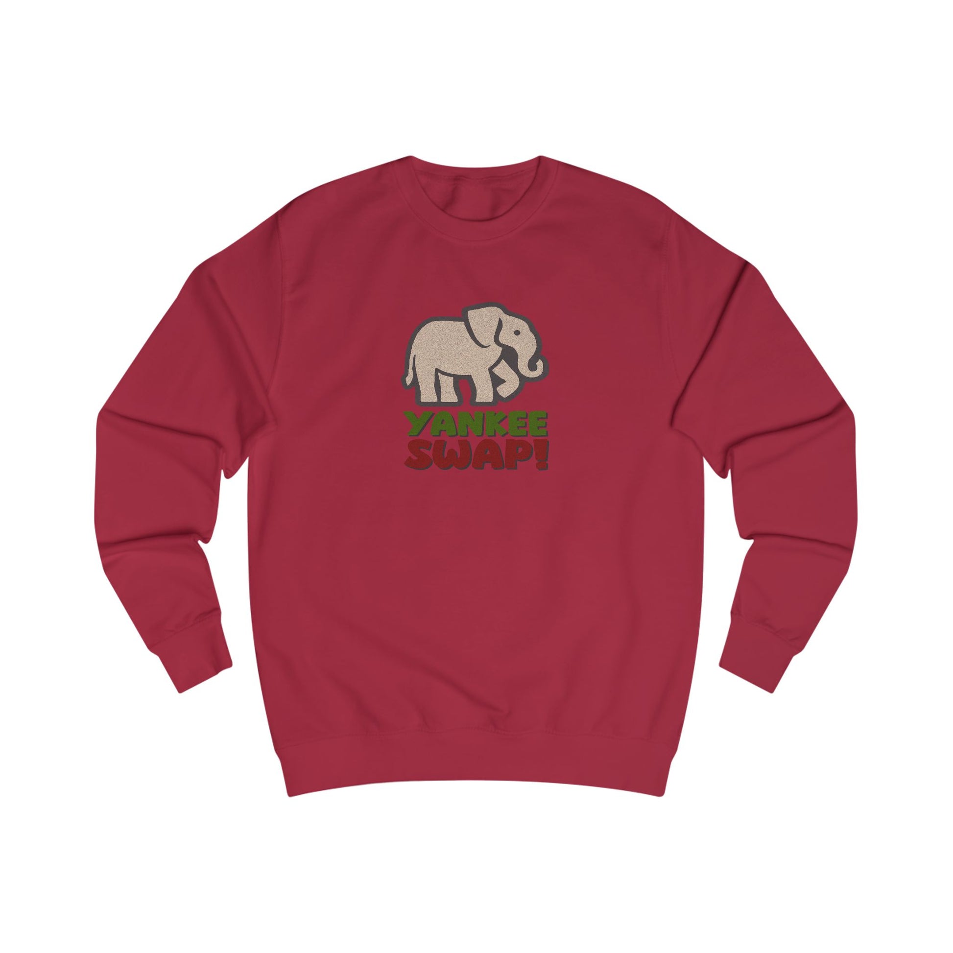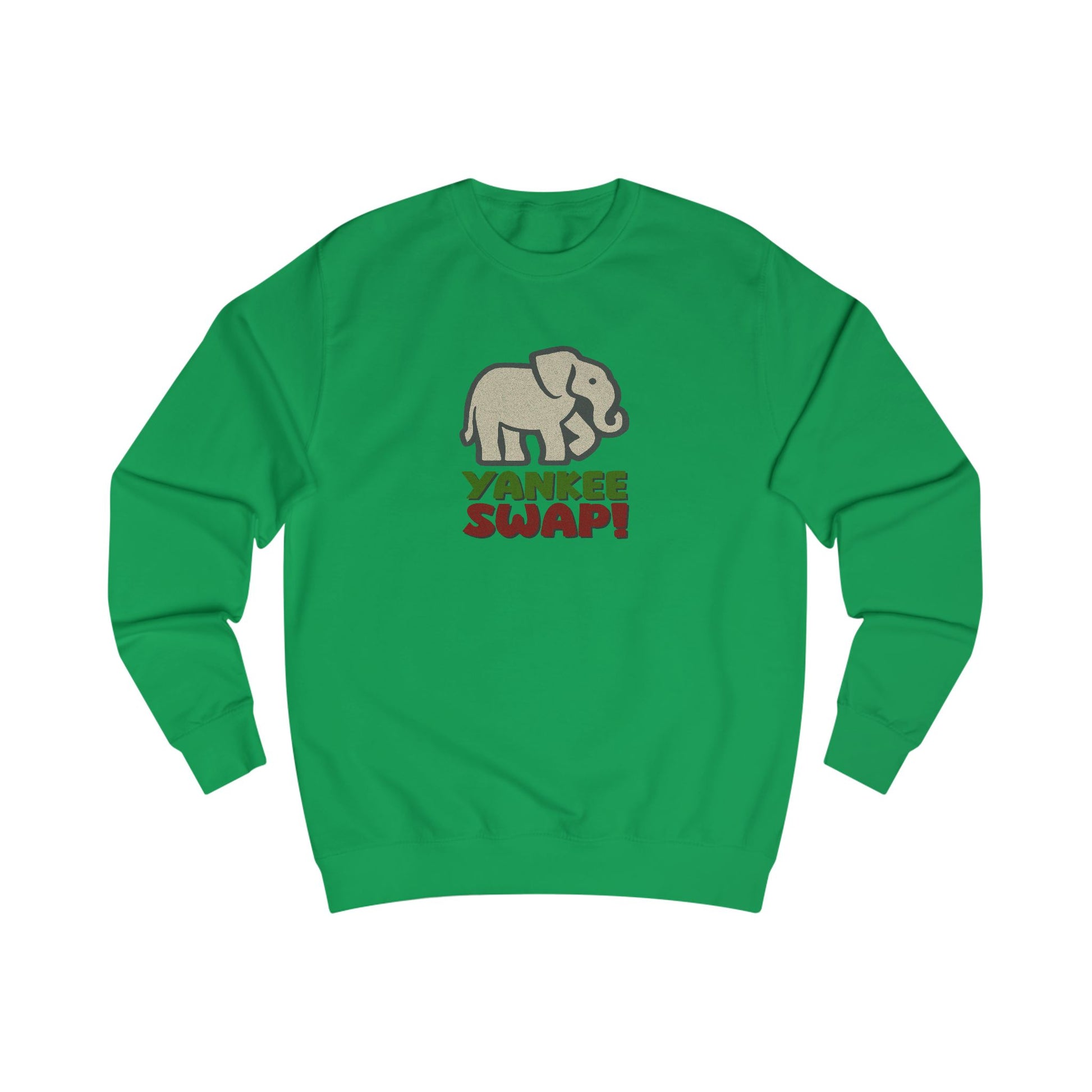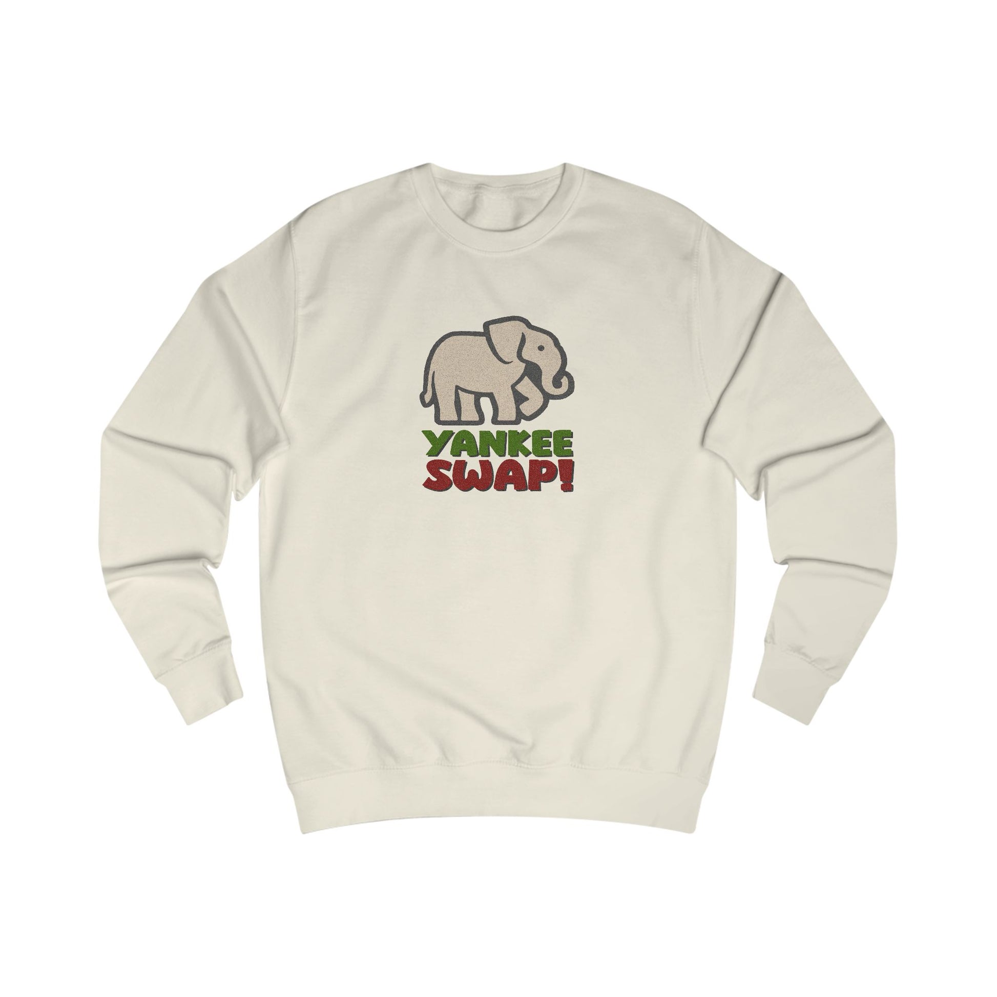 - Features a retro white elephant and bold holiday lettering
