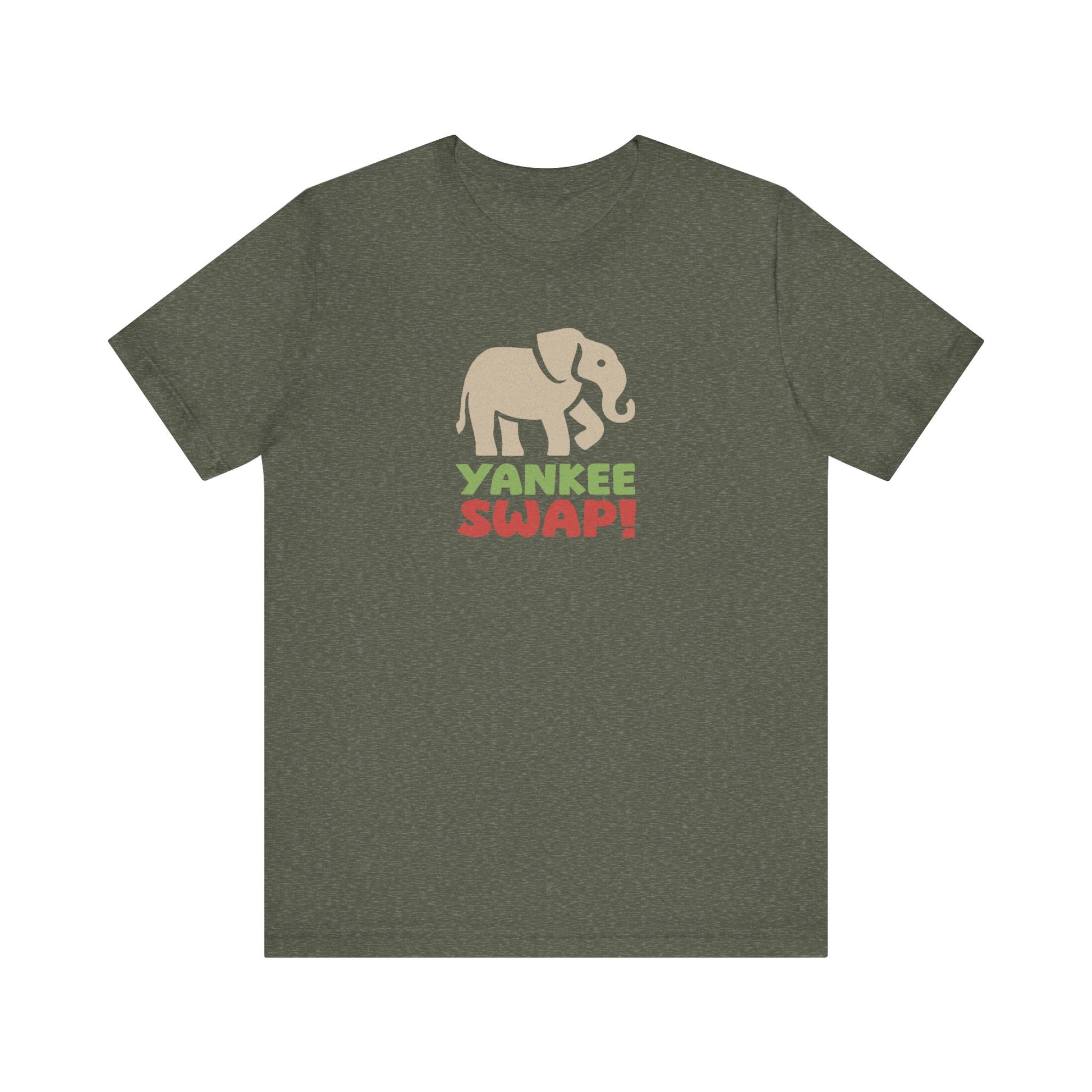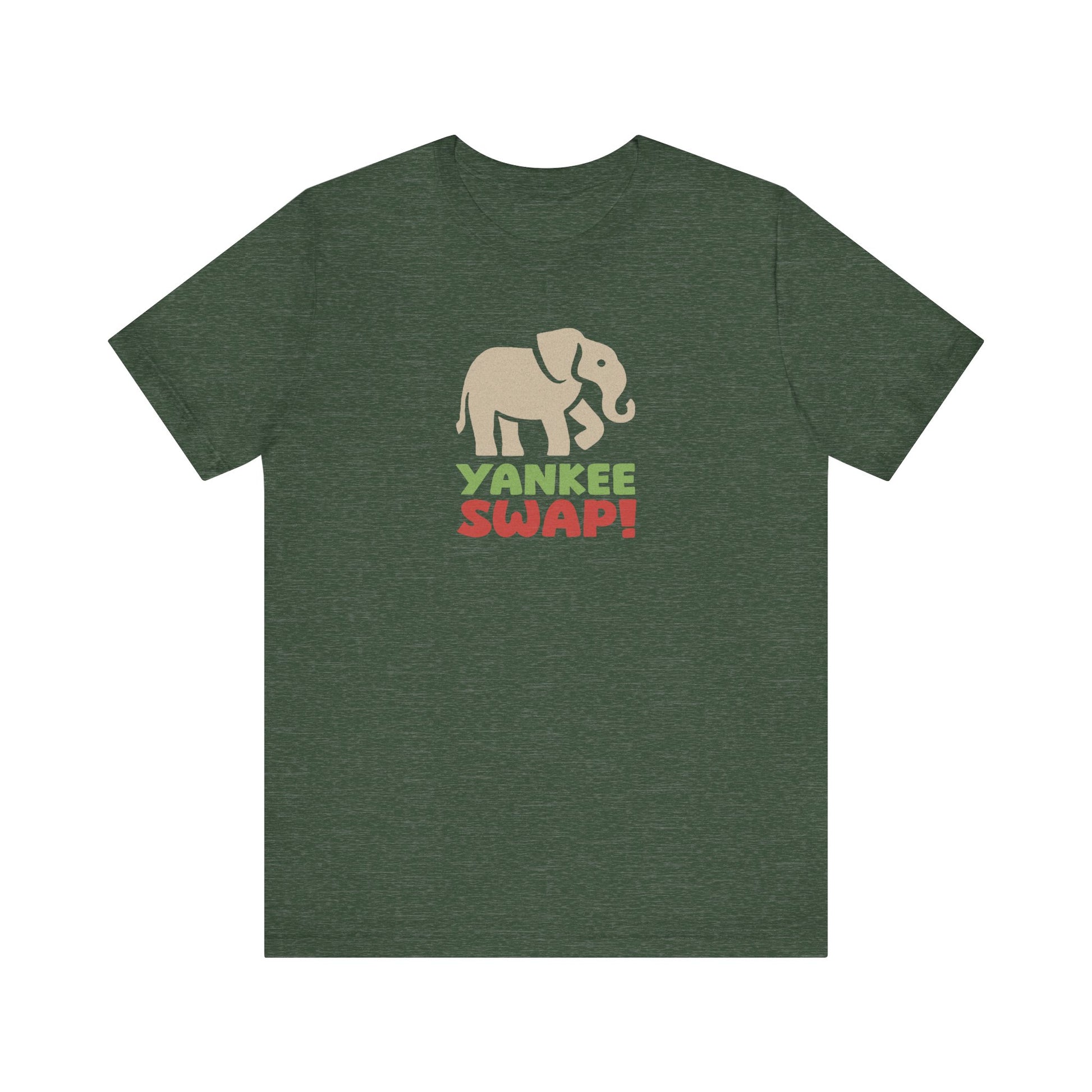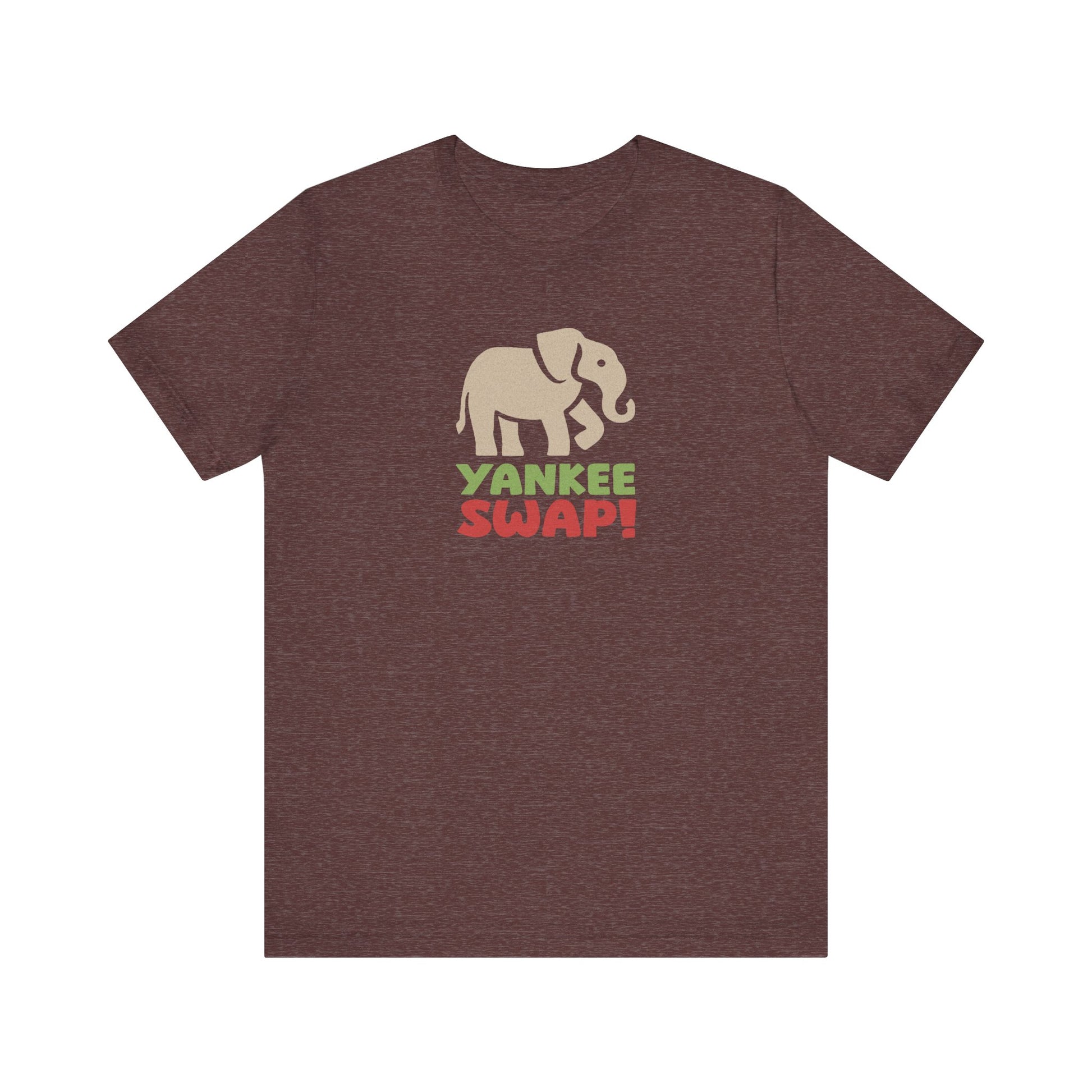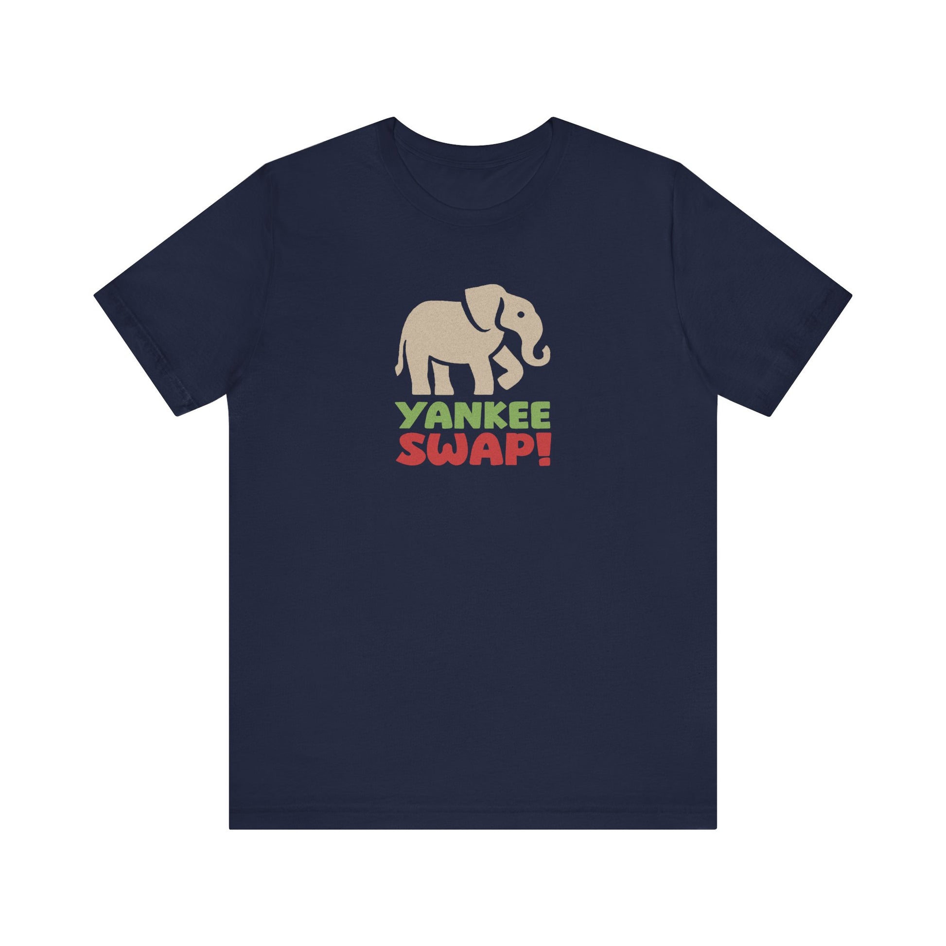 - Features a retro white elephant and bold holiday lettering