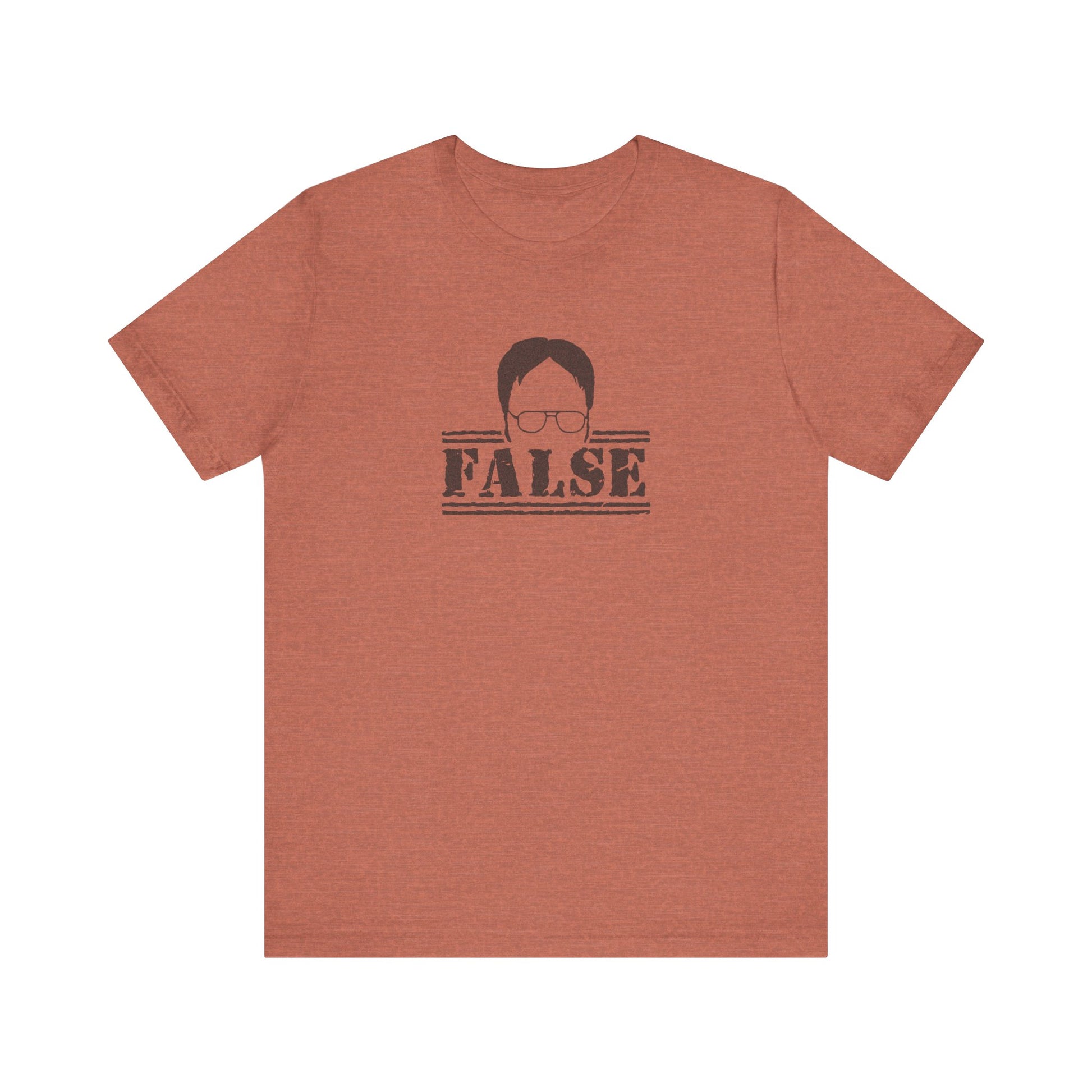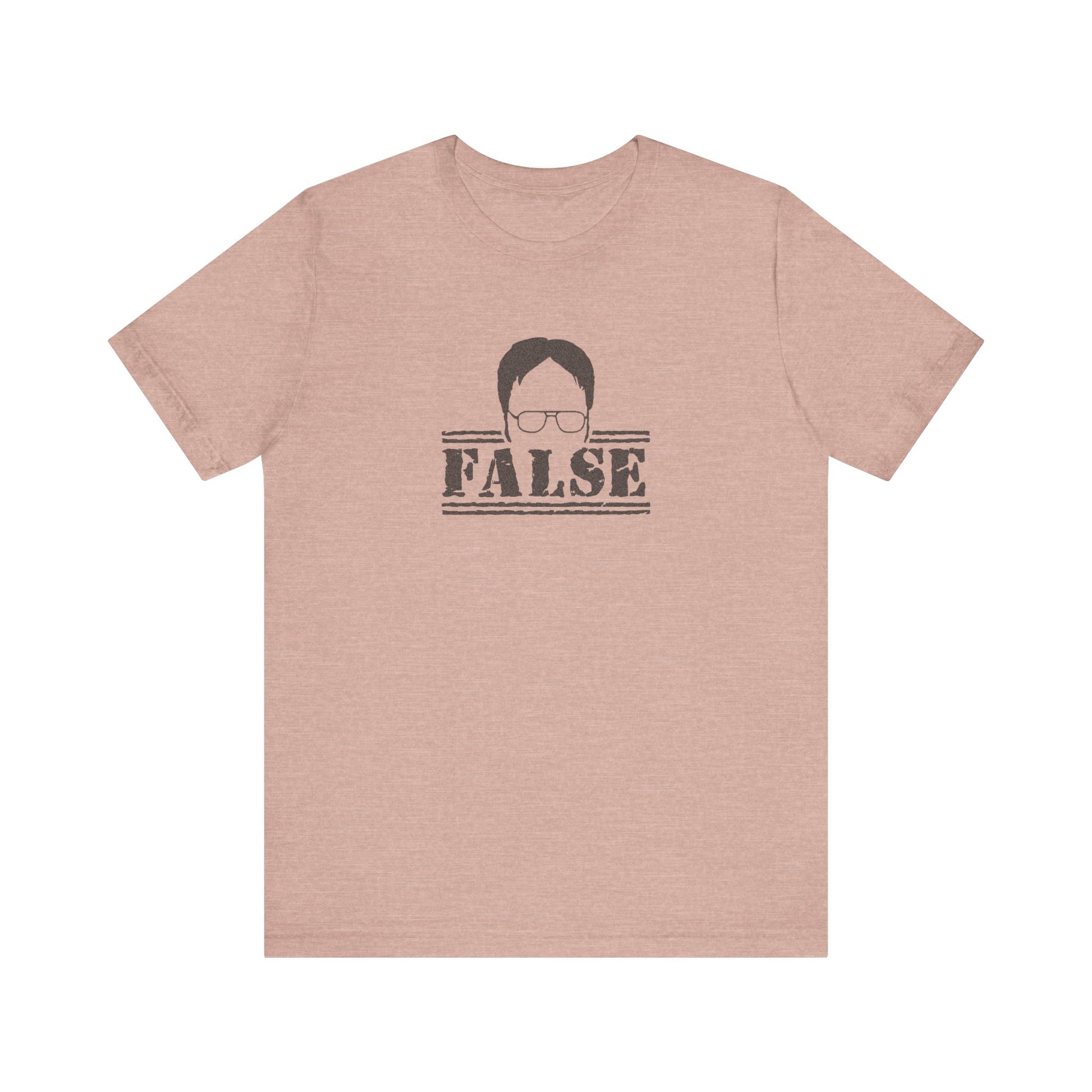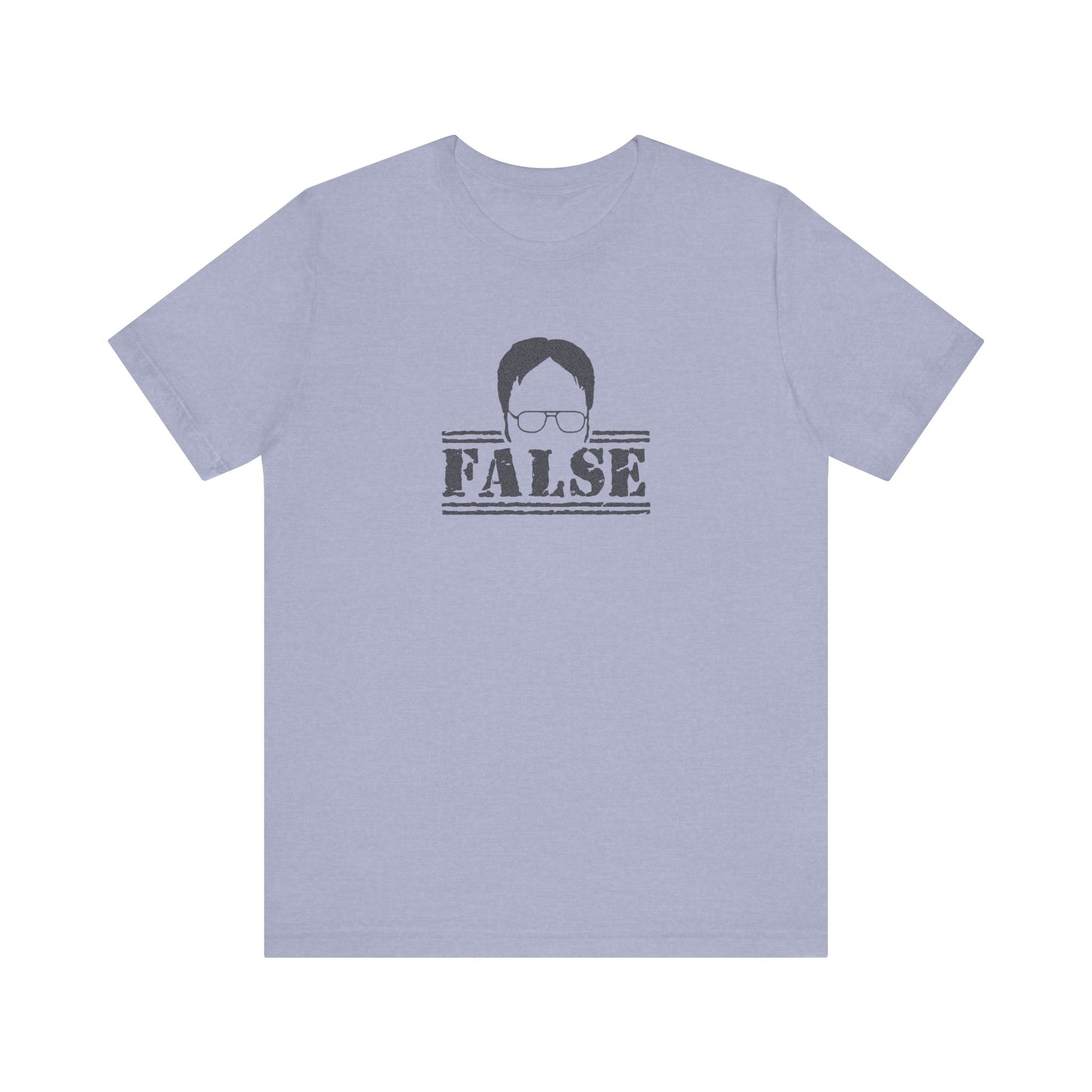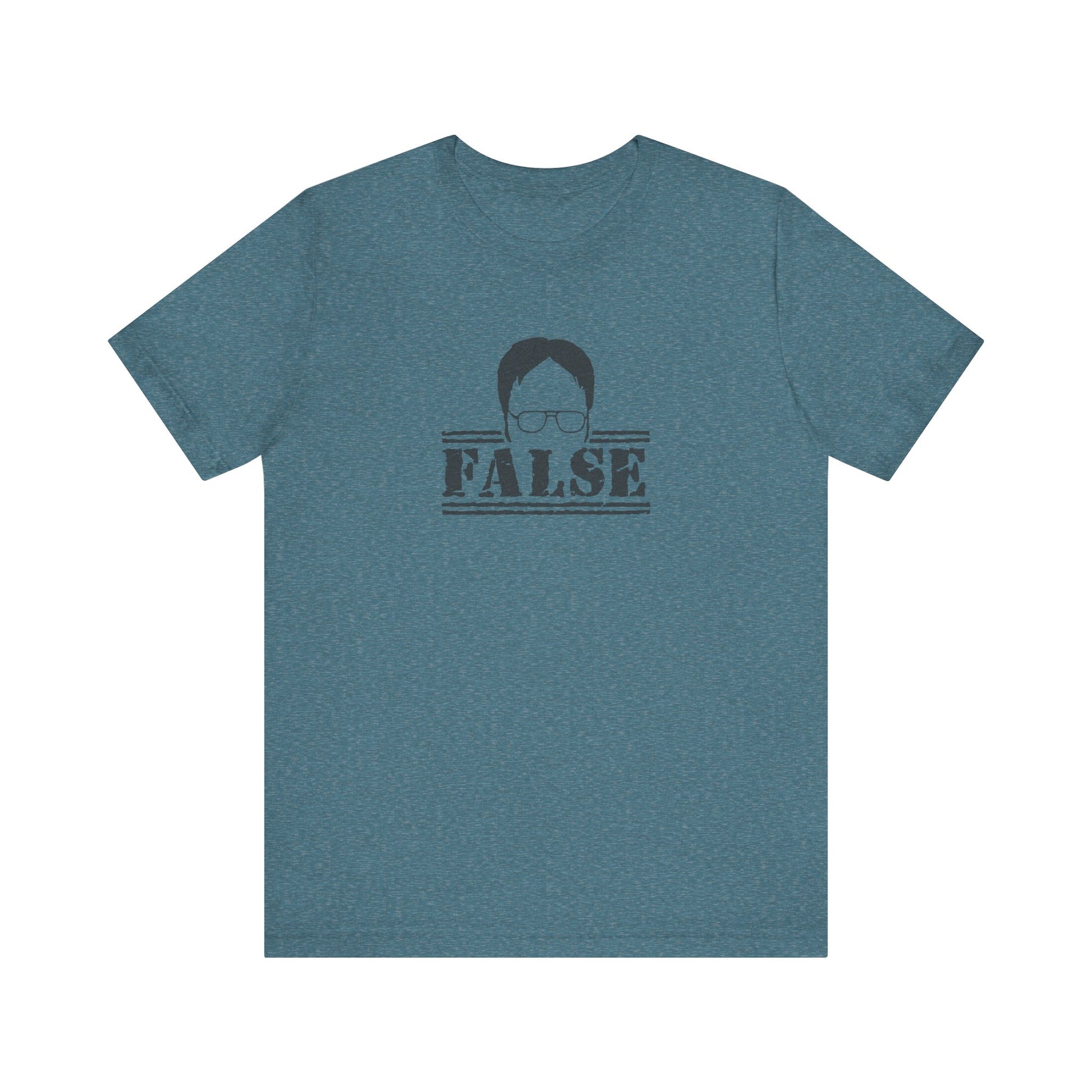 - Features Dwight’s classic “FALSE” response in bold stencil lettering