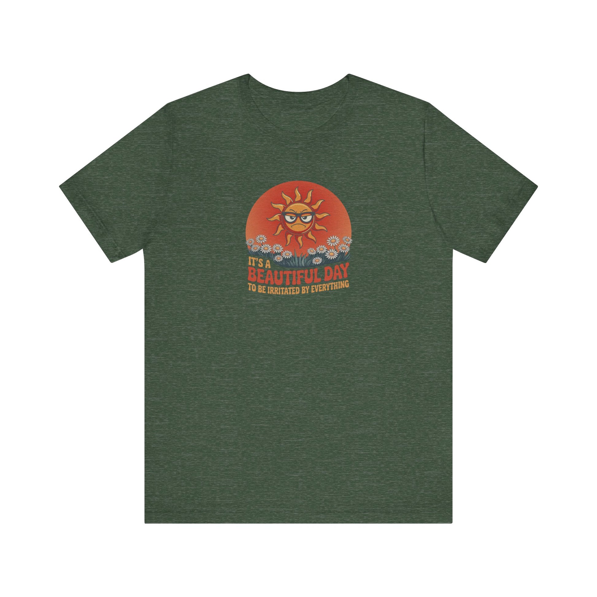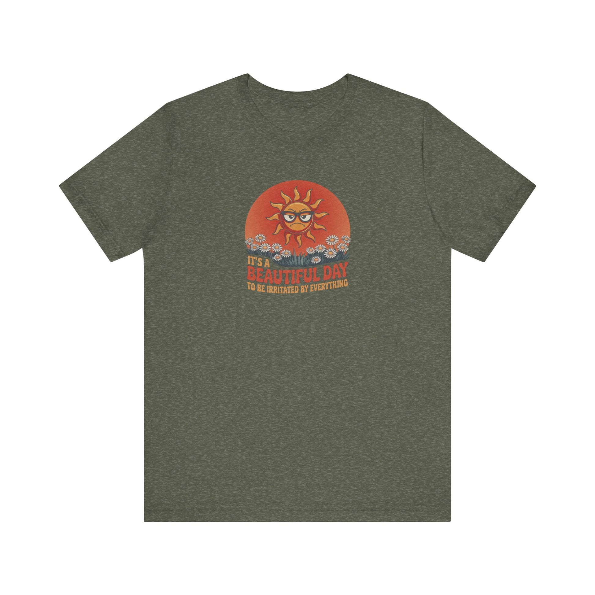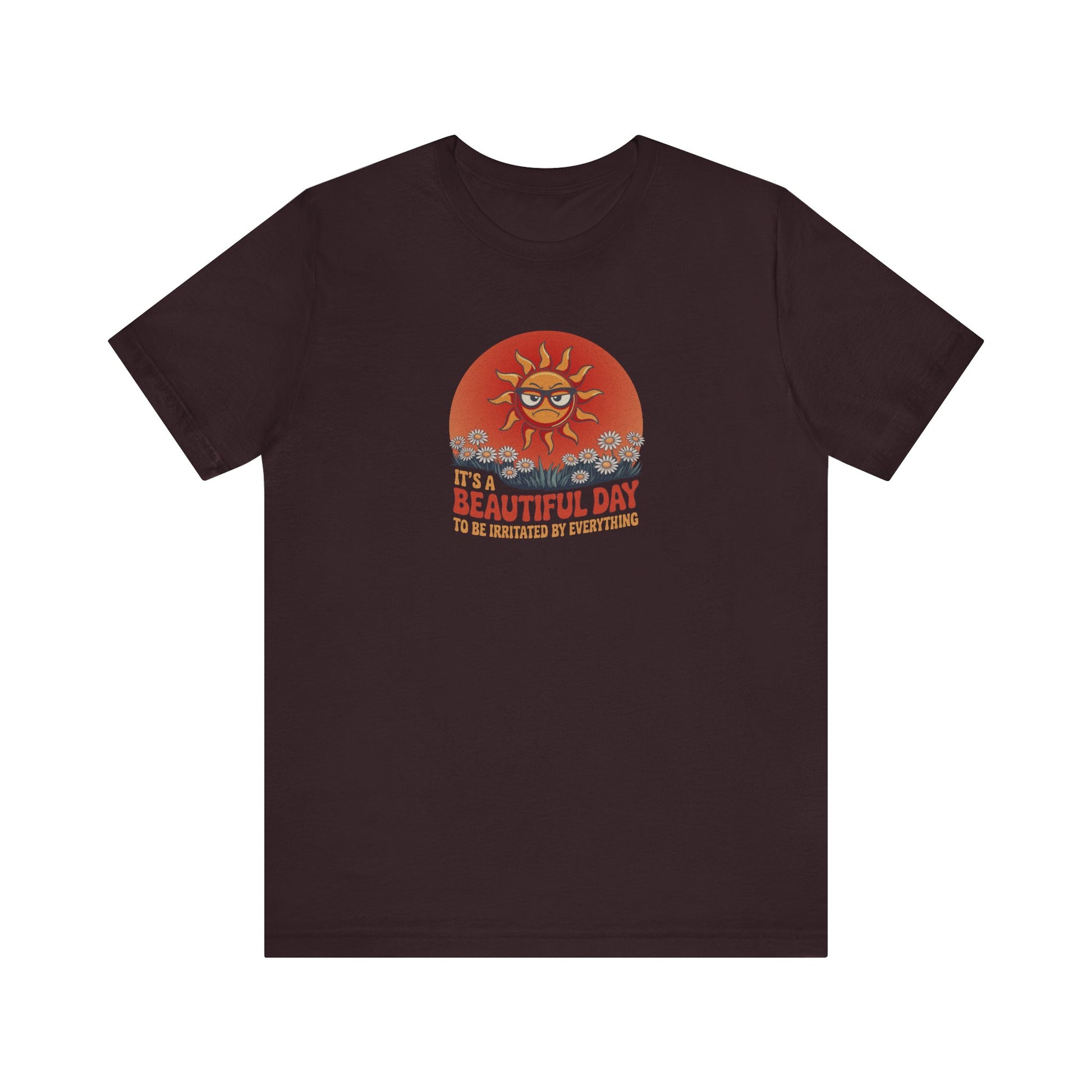 It’s a beautiful day... to lose your last ounce of patience. Some tees brighten your outlook. This one validates your bad mood and still makes you look good doing it. With vintage flair and a sun who’s clearly over it, this design brings groovy style to grouchy vibes.