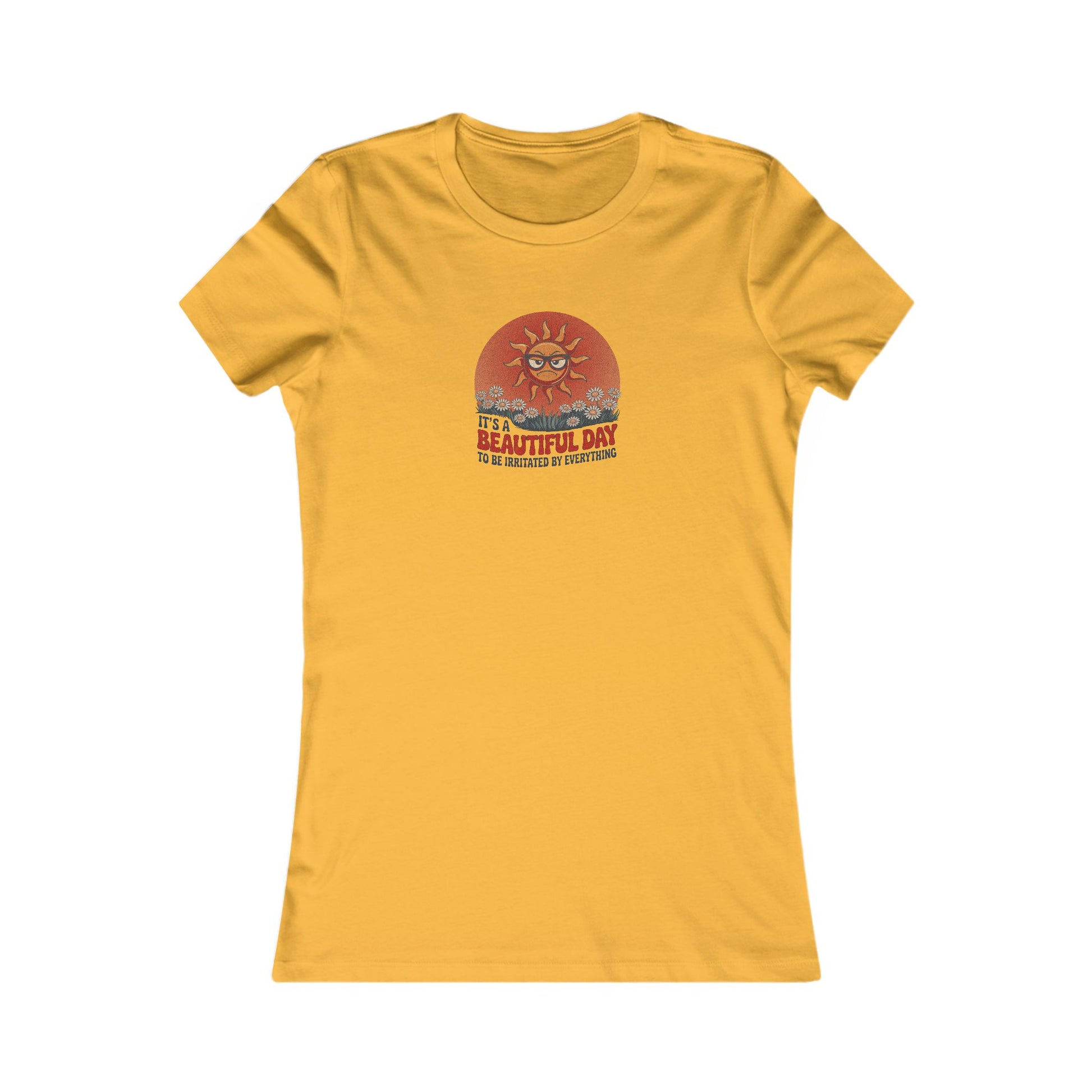 It’s a beautiful day... to lose your last ounce of patience. Some tees brighten your outlook. This one validates your bad mood and still makes you look good doing it. With vintage flair and a sun who’s clearly over it, this design brings groovy style to grouchy vibes.