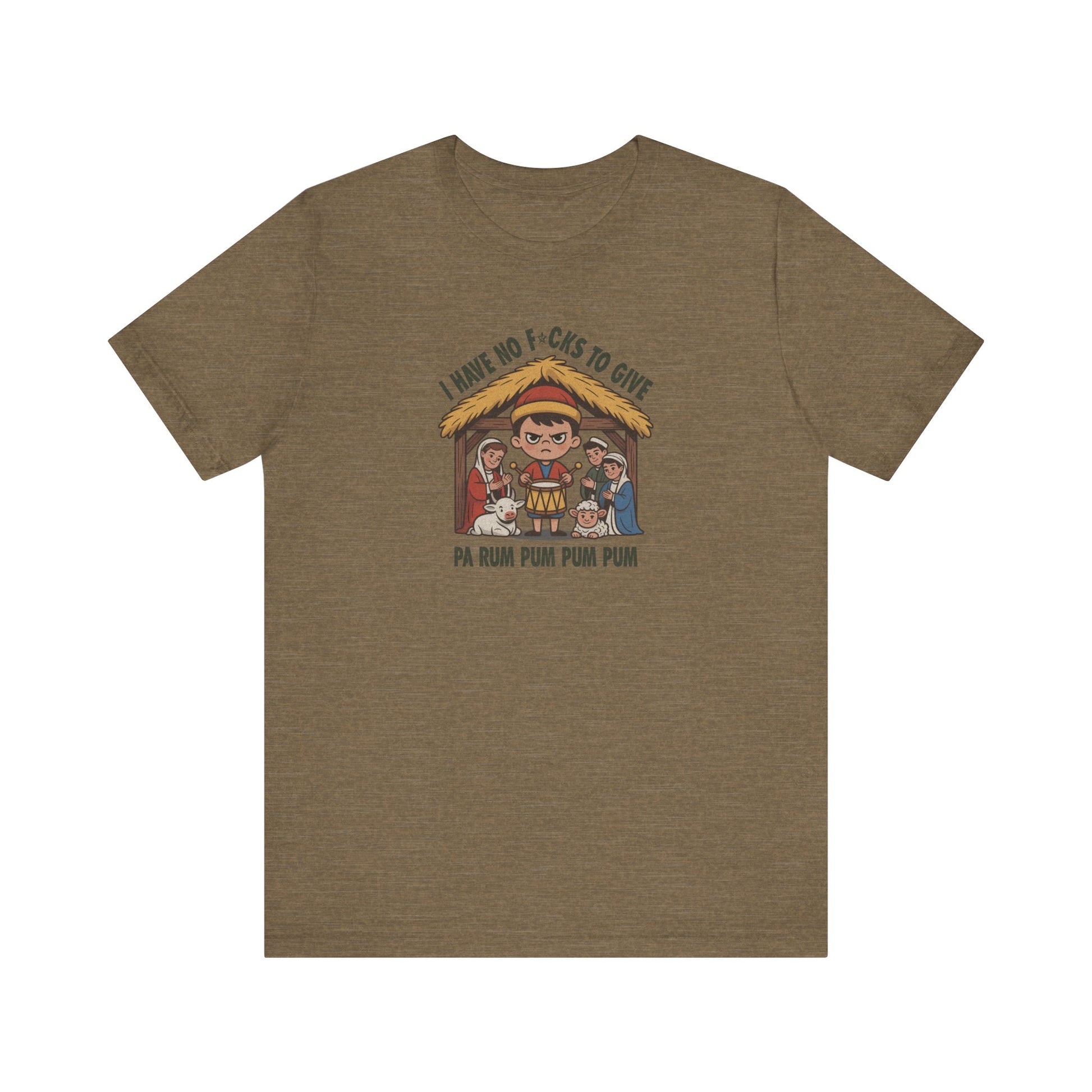 The Little Drummer Boy has had enough. This irreverent holiday tee flips the script on nativity pageants with a glare that could silence the entire choir. Whether you're over the carols, the chaos, or just here to bang on a drum, this design delivers festive fury with vintage flair and zero apologies. Pa rum pum pum pum, indeed.