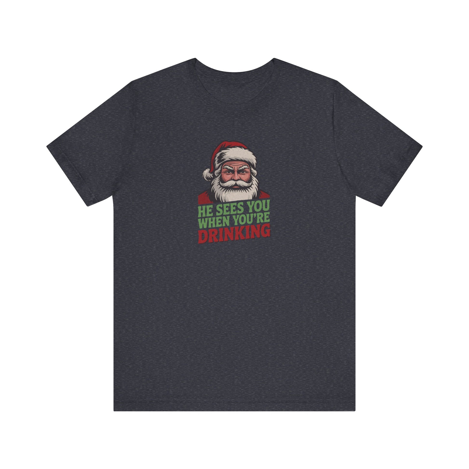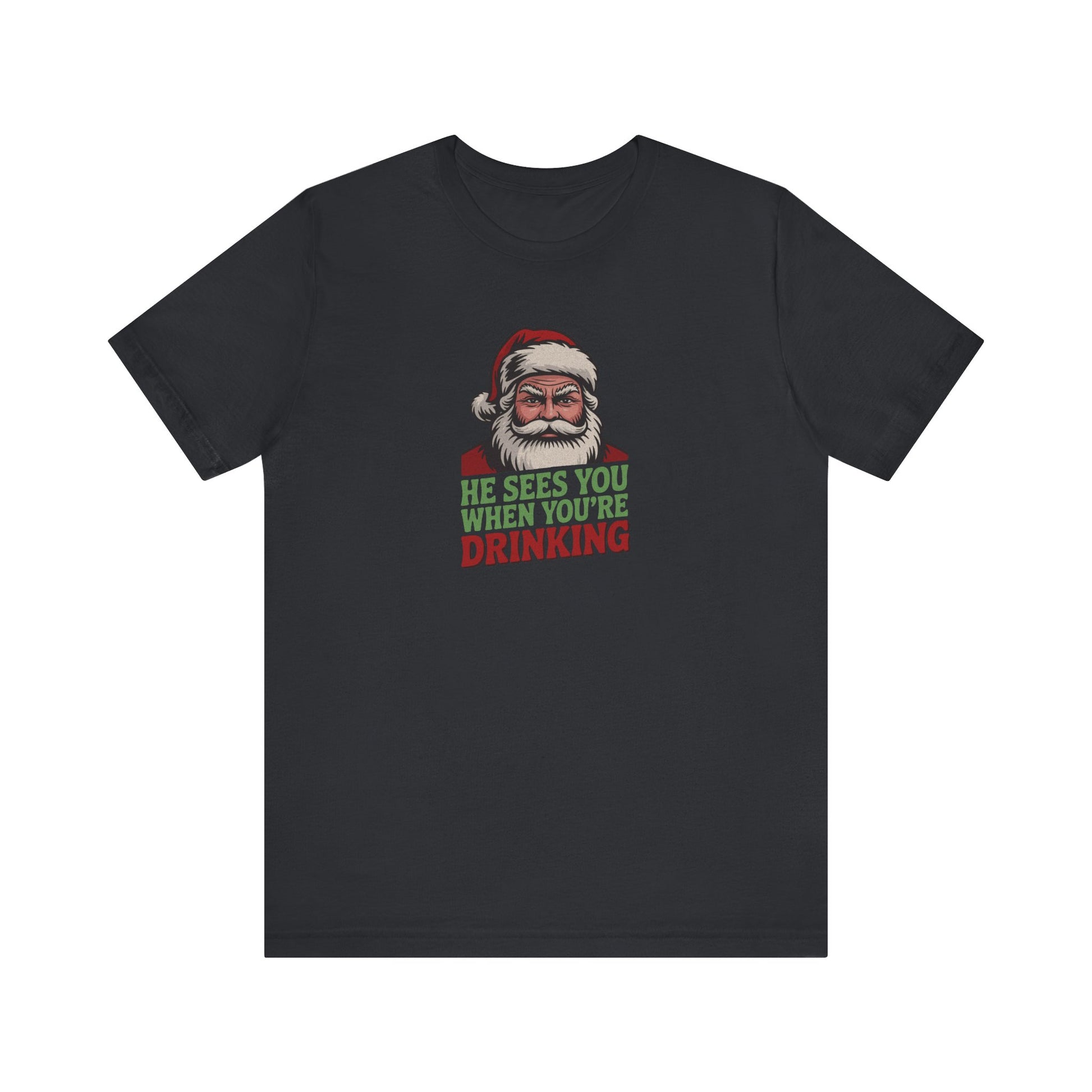 He Sees You When You're Drinking — Judgmental Santa Retro Tee (Dark)