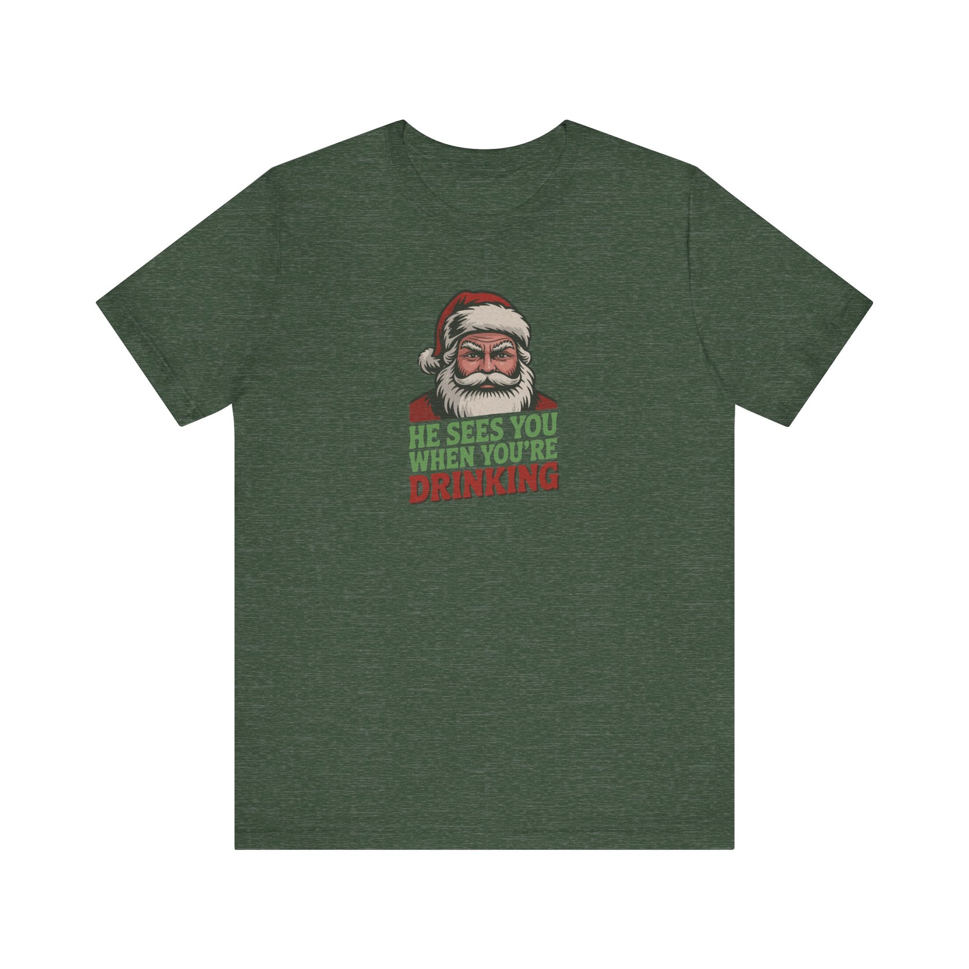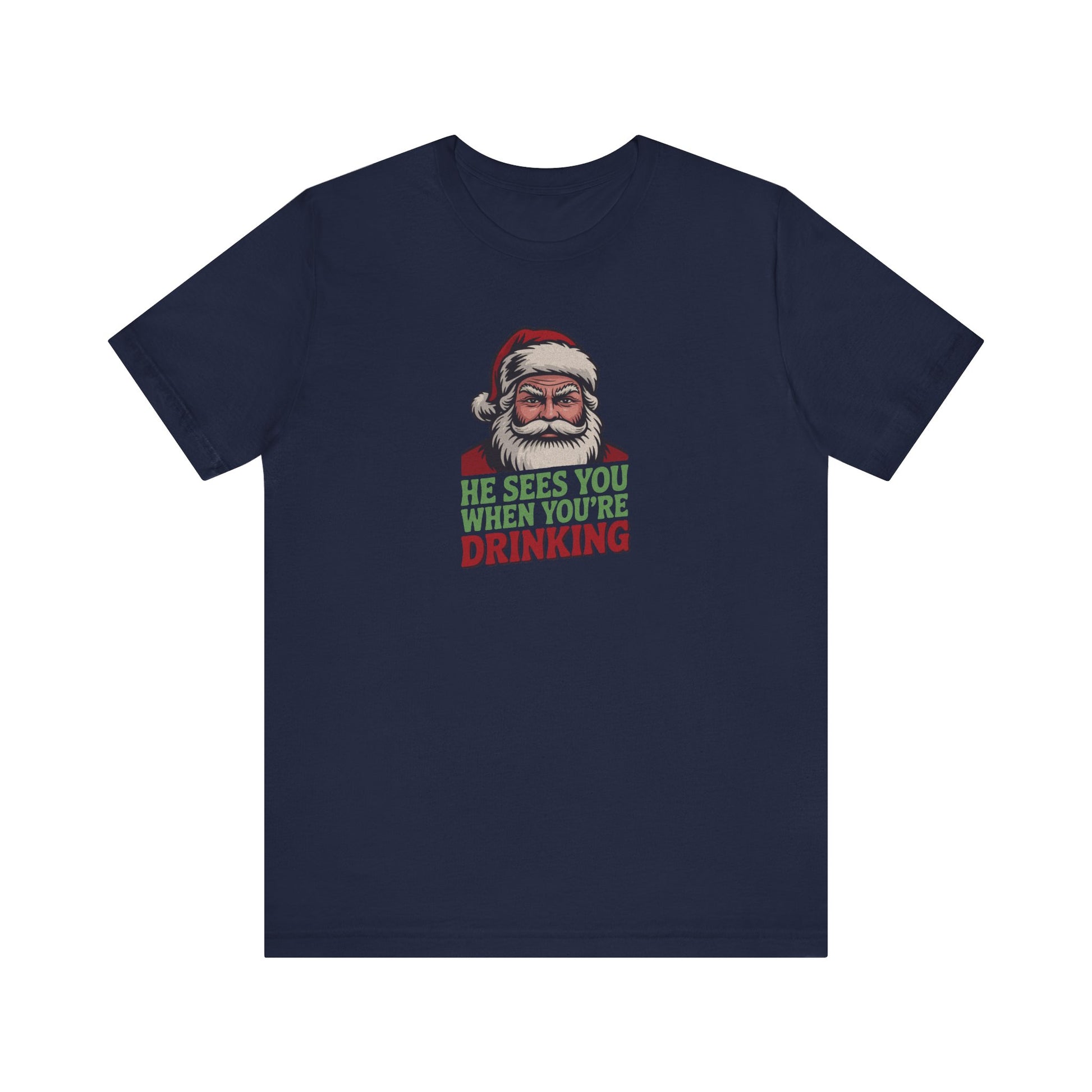 Santa’s always watching… especially when you're a few eggnogs deep. This holiday tee puts a boozy twist on a classic lyric with retro lettering and a vintage-style Santa who’s clearly judging you. Whether you're sipping cider, mulled wine, or hitting the hard stuff, it's perfect for parties, bar crawls, and making spirits bright. Naughty never looked so nice.